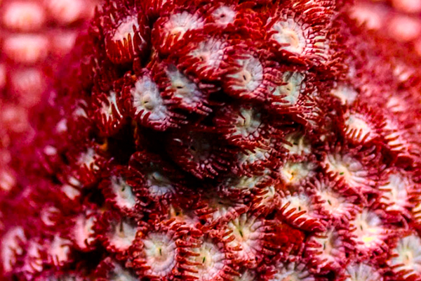 Ob leuchtendes Orange, tiefes Rot oder fluoreszierende Grün- und Gelbtöne – Cyphastrea überzeugt durch starke Farbkontraste und intensive Wirkung unter Blaulicht.
